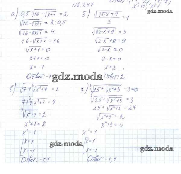 ОТВЕТ на задание № 2.247 Учебник по Алгебре 10 класс Арефьева