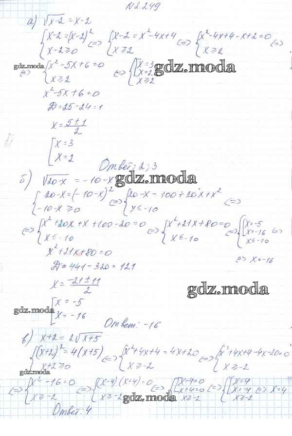 ОТВЕТ на задание № 2.249 Учебник по Алгебре 10 класс Арефьева