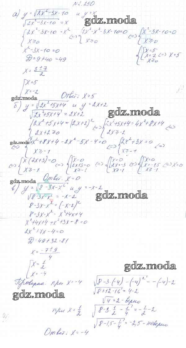 ОТВЕТ на задание № 2.250 Учебник по Алгебре 10 класс Арефьева