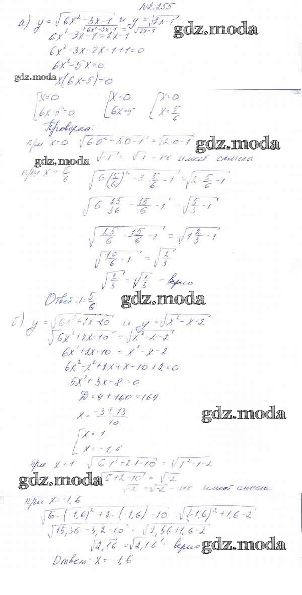 ОТВЕТ на задание № 2.255 Учебник по Алгебре 10 класс Арефьева