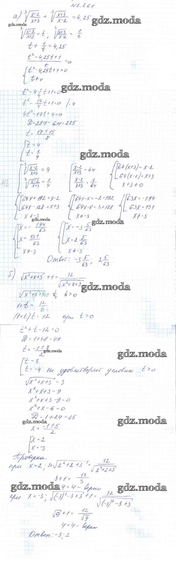 ОТВЕТ на задание № 2.261 Учебник по Алгебре 10 класс Арефьева