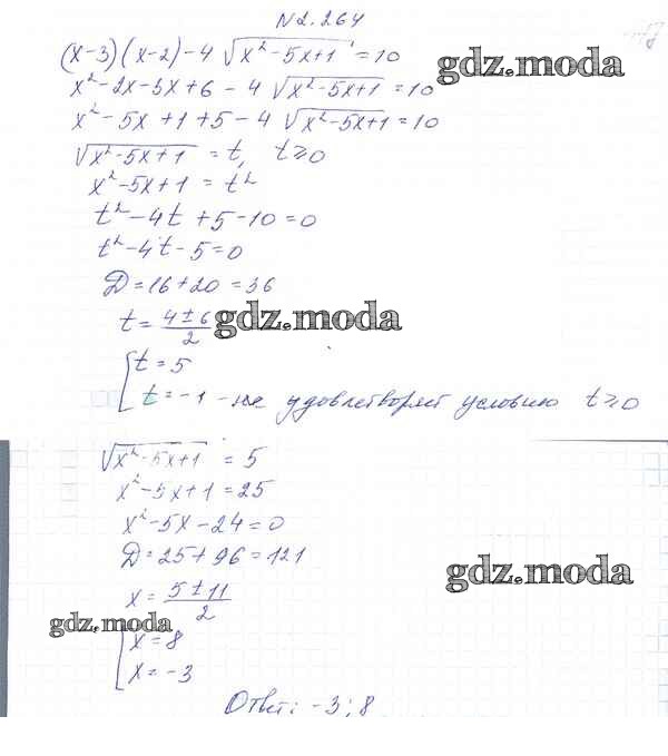ОТВЕТ на задание № 2.264 Учебник по Алгебре 10 класс Арефьева