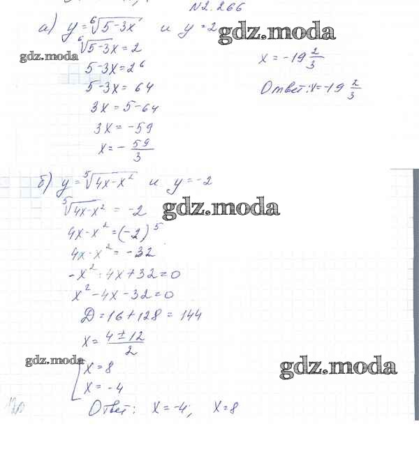 ОТВЕТ на задание № 2.266 Учебник по Алгебре 10 класс Арефьева