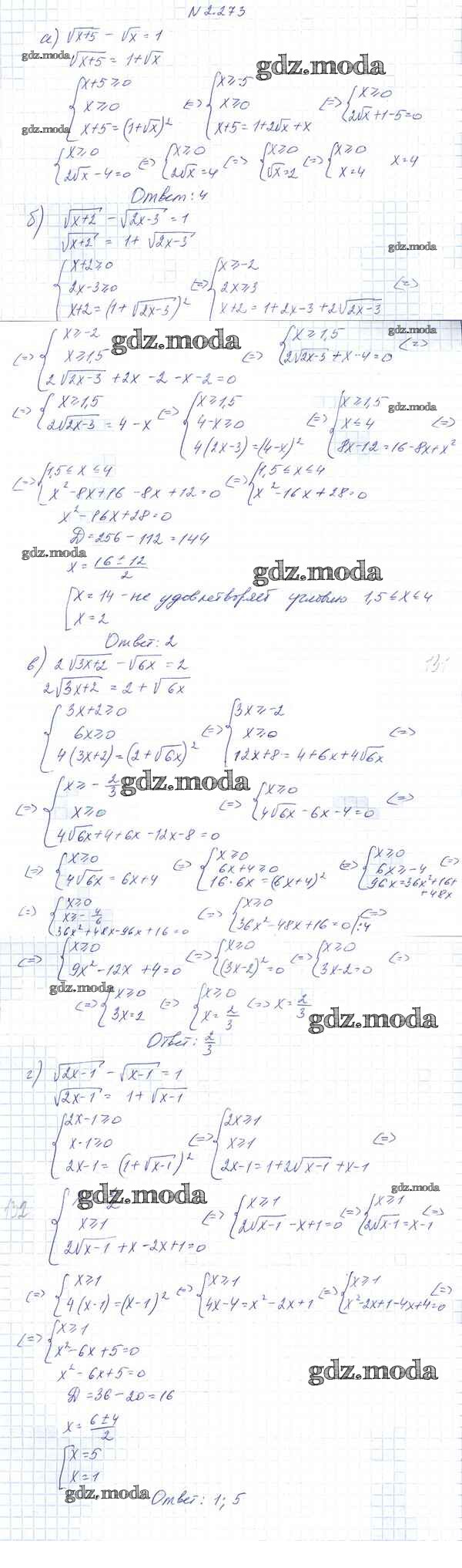 ОТВЕТ на задание № 2.273 Учебник по Алгебре 10 класс Арефьева