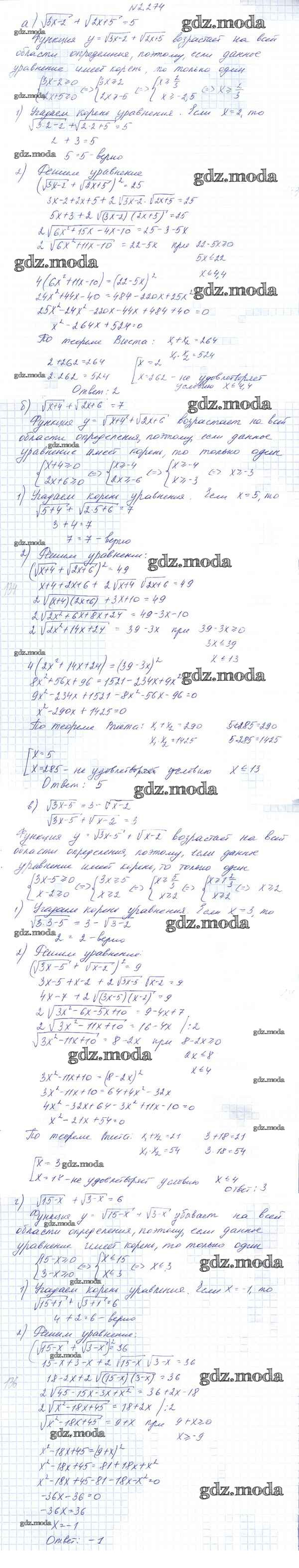 ОТВЕТ на задание № 2.274 Учебник по Алгебре 10 класс Арефьева