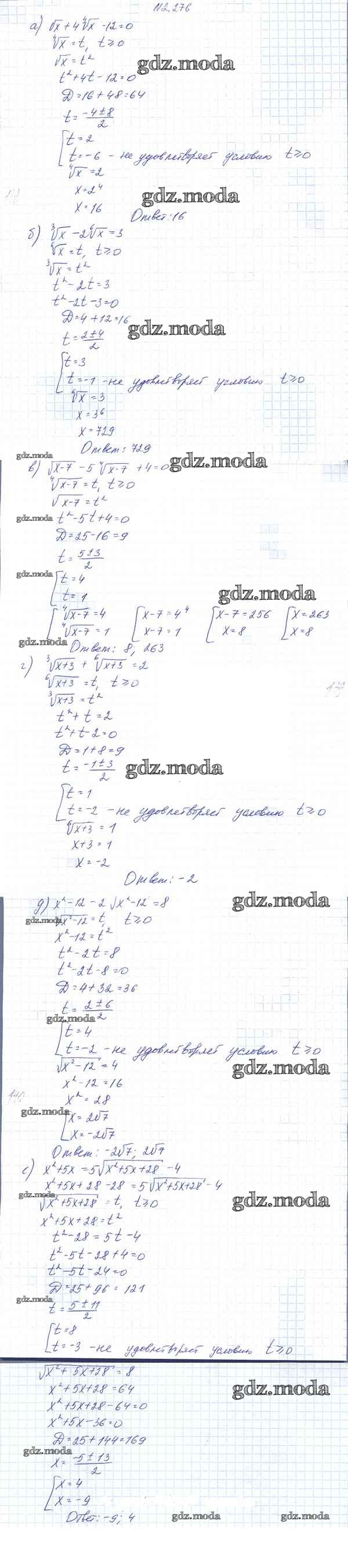 ОТВЕТ на задание № 2.276 Учебник по Алгебре 10 класс Арефьева