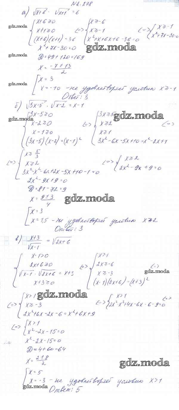 ОТВЕТ на задание № 2.278 Учебник по Алгебре 10 класс Арефьева