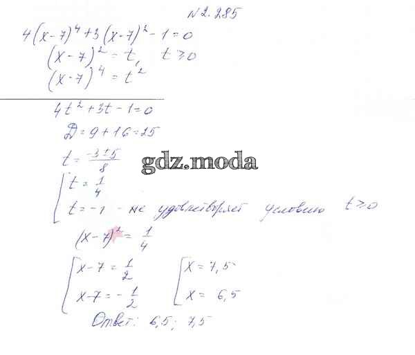 ОТВЕТ на задание № 2.285 Учебник по Алгебре 10 класс Арефьева