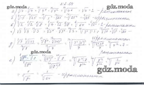ОТВЕТ на задание № 2.64 Учебник по Алгебре 10 класс Арефьева