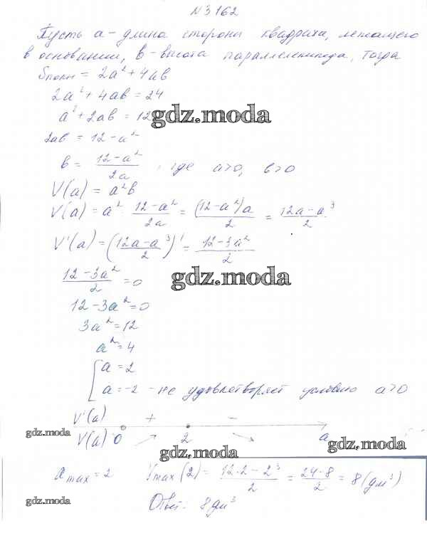 ОТВЕТ на задание № 3.162 Учебник по Алгебре 10 класс Арефьева