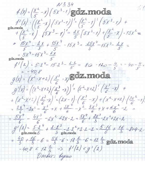 ОТВЕТ на задание № 3.34 Учебник по Алгебре 10 класс Арефьева