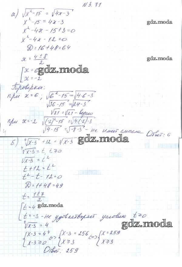 ОТВЕТ на задание № 3.71 Учебник по Алгебре 10 класс Арефьева
