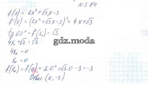 ОТВЕТ на задание № 3.84 Учебник по Алгебре 10 класс Арефьева