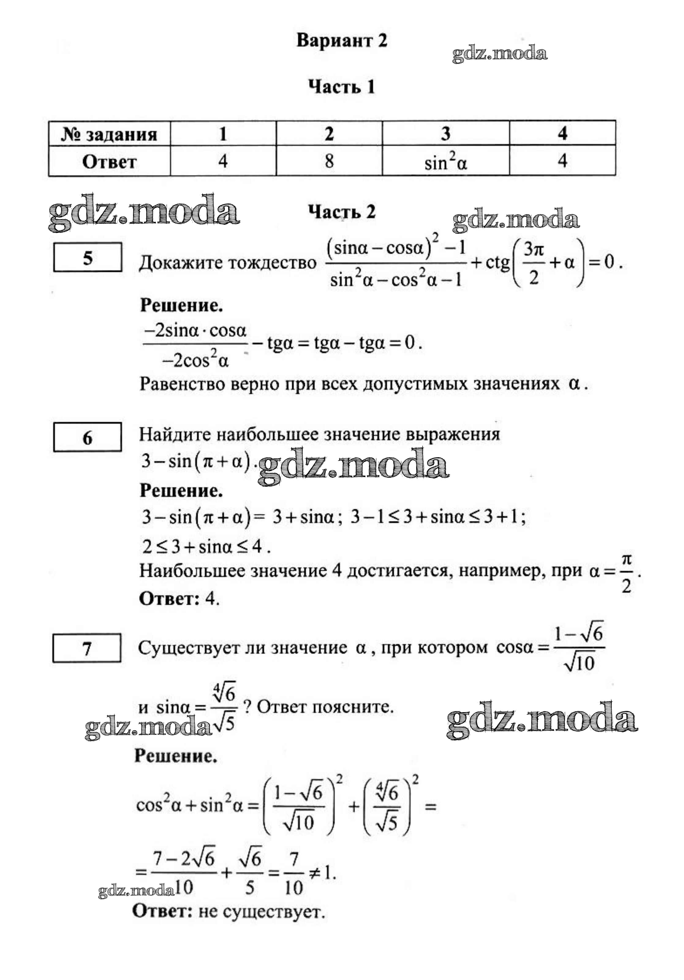 ГДЗ решение к заданию № 2 Алгебра 10 класс контрольные работы Дудницын (В новом формате) Интеллект, Центр 2013 бесплатно на гдз.мода!