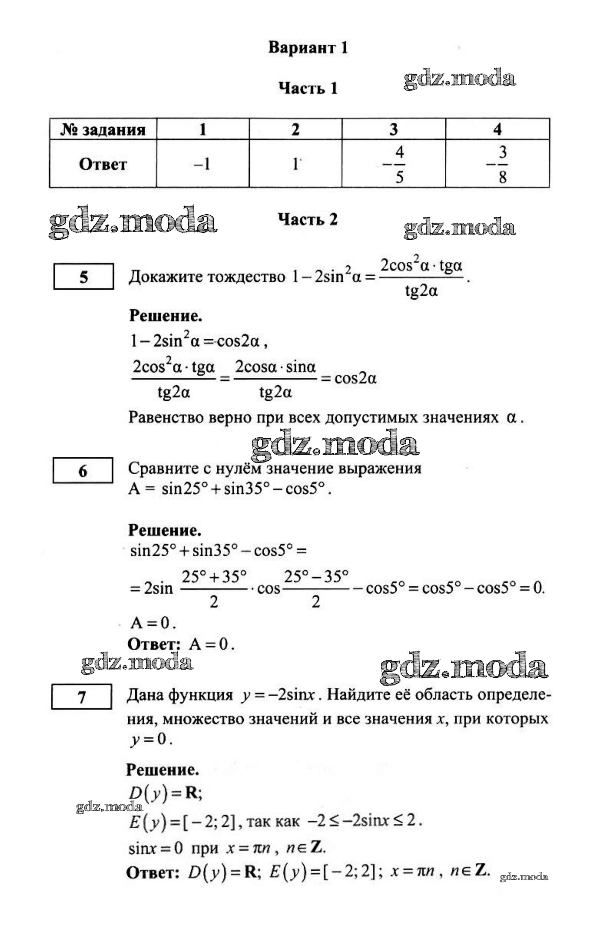 ГДЗ решение к заданию № 1 Алгебра 10 класс контрольные работы Дудницын (В новом формате) Интеллект, Центр 2013 бесплатно на гдз.мода!