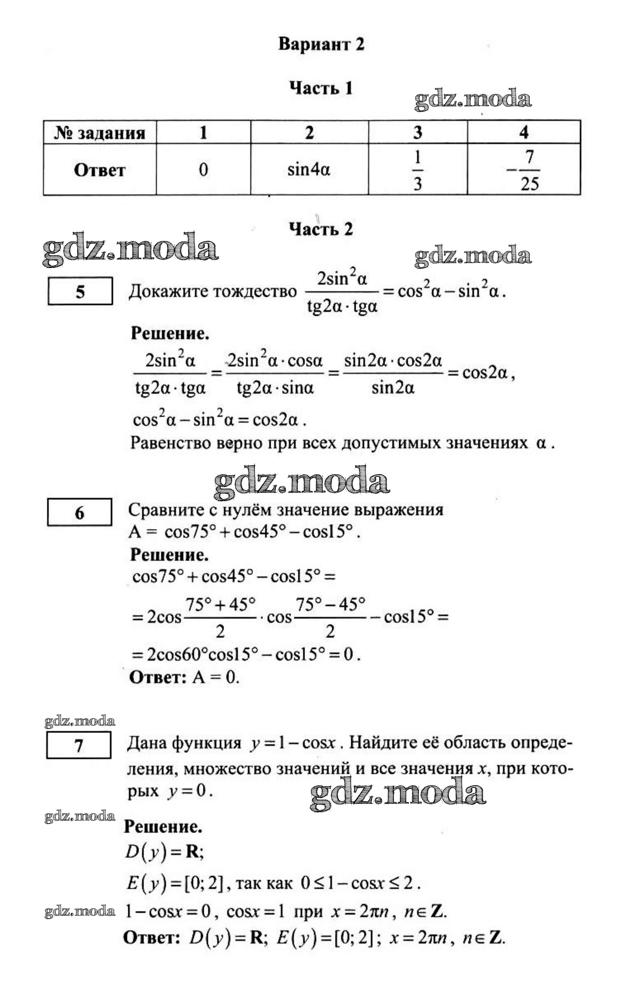 ГДЗ решение к заданию № 2 Алгебра 10 класс контрольные работы Дудницын (В новом формате) Интеллект, Центр 2013 бесплатно на гдз.мода!