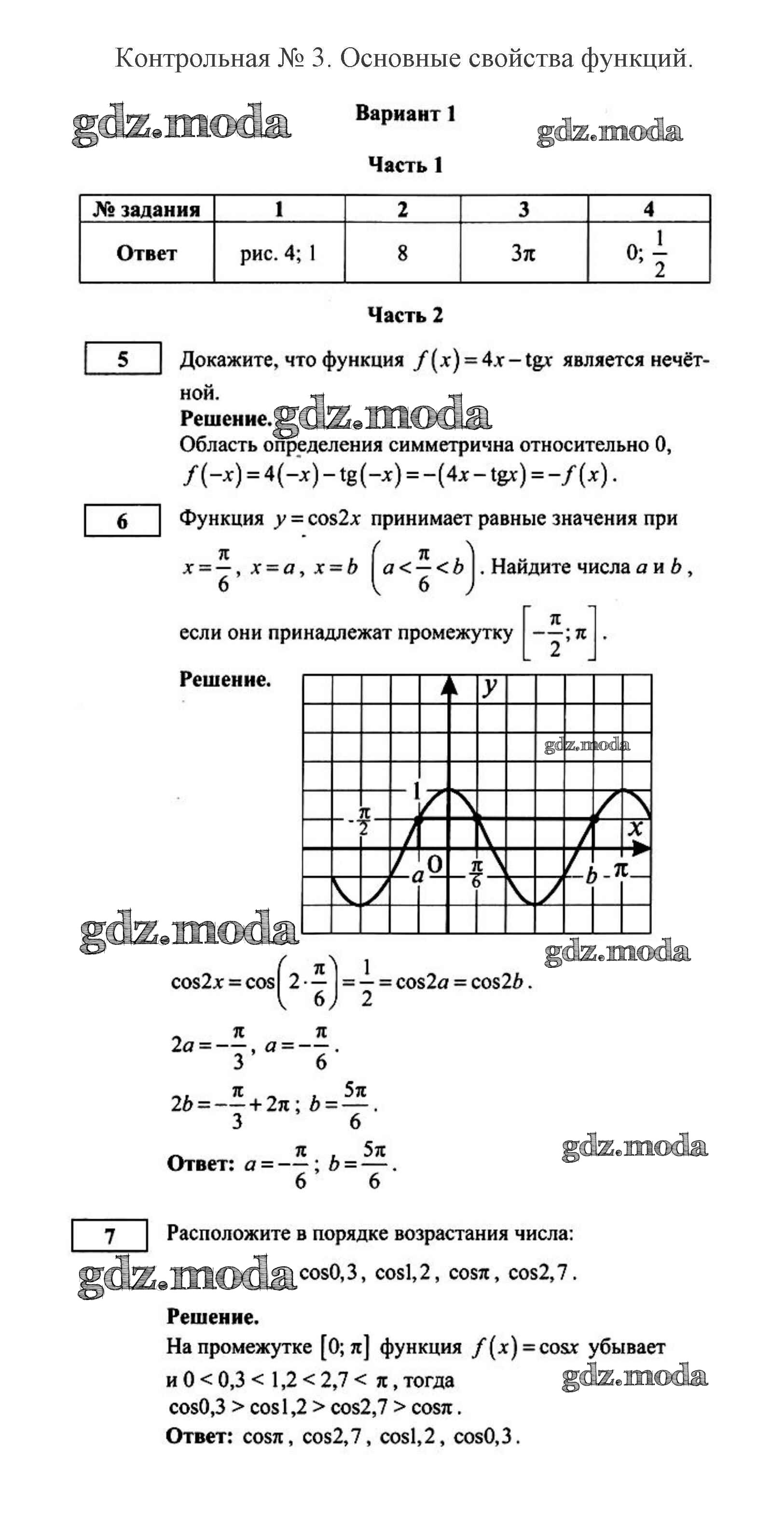 ОТВЕТ на задание № 1 Контрольные работы по Алгебре 10 класс Дудницын