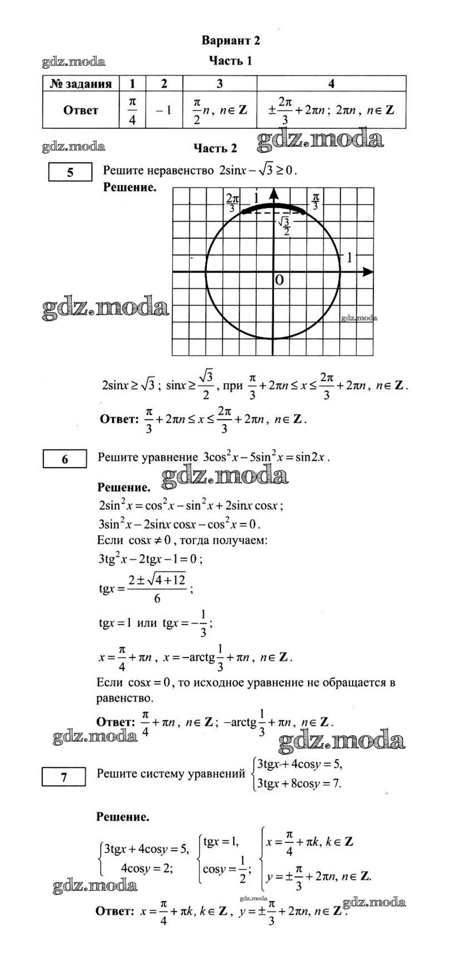 ГДЗ решение к заданию № 2 Алгебра 10 класс контрольные работы Дудницын (В новом формате) Интеллект, Центр 2013 бесплатно на гдз.мода!