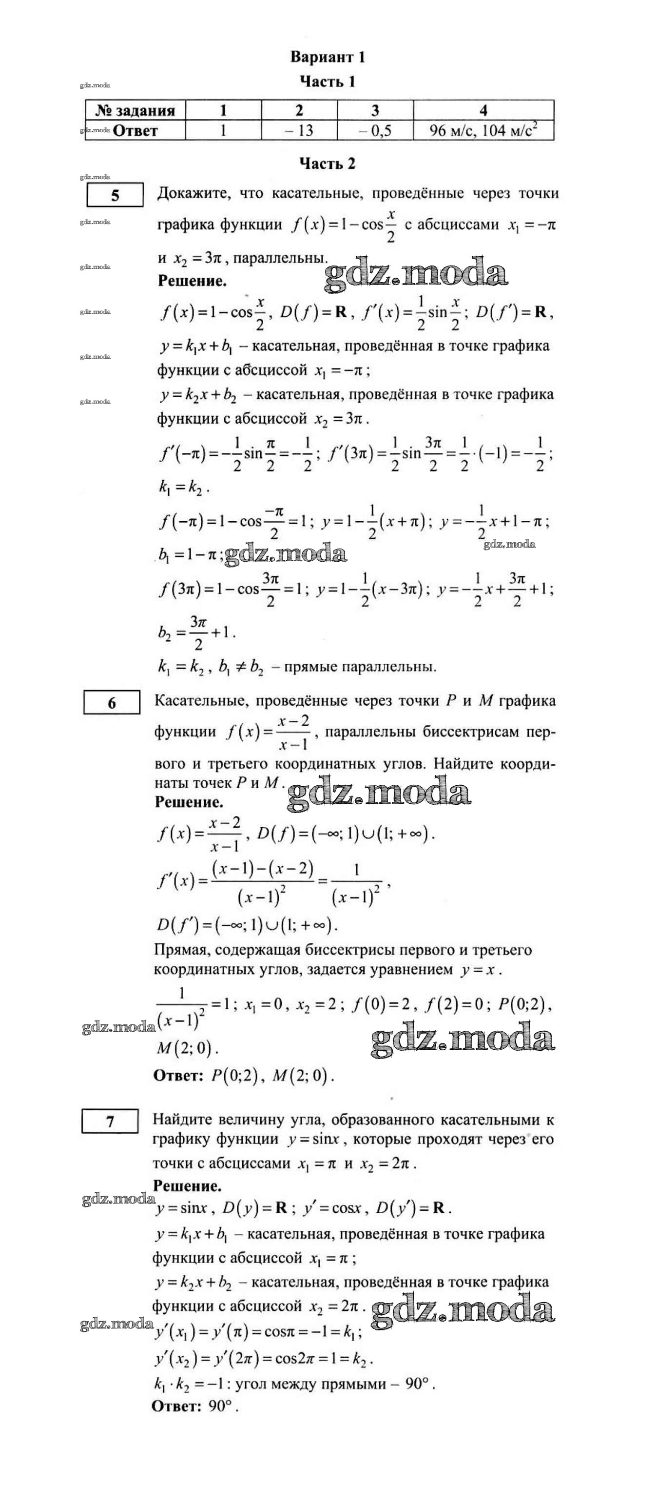 ОТВЕТ на задание № 1 Контрольные работы по Алгебре 10 класс Дудницын