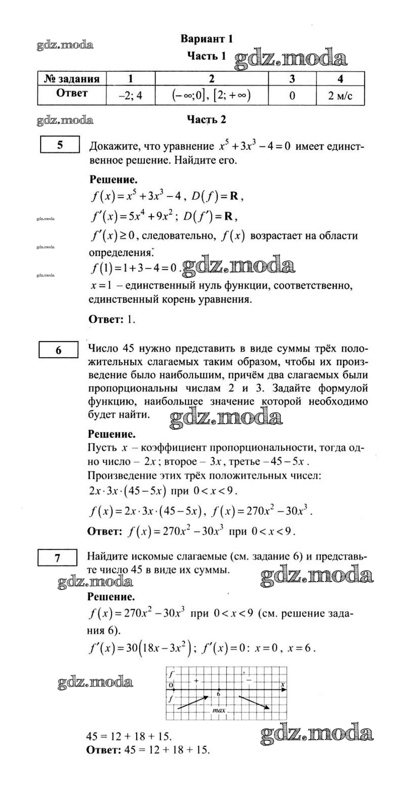 ОТВЕТ на задание № 1 Контрольные работы по Алгебре 10 класс Дудницын
