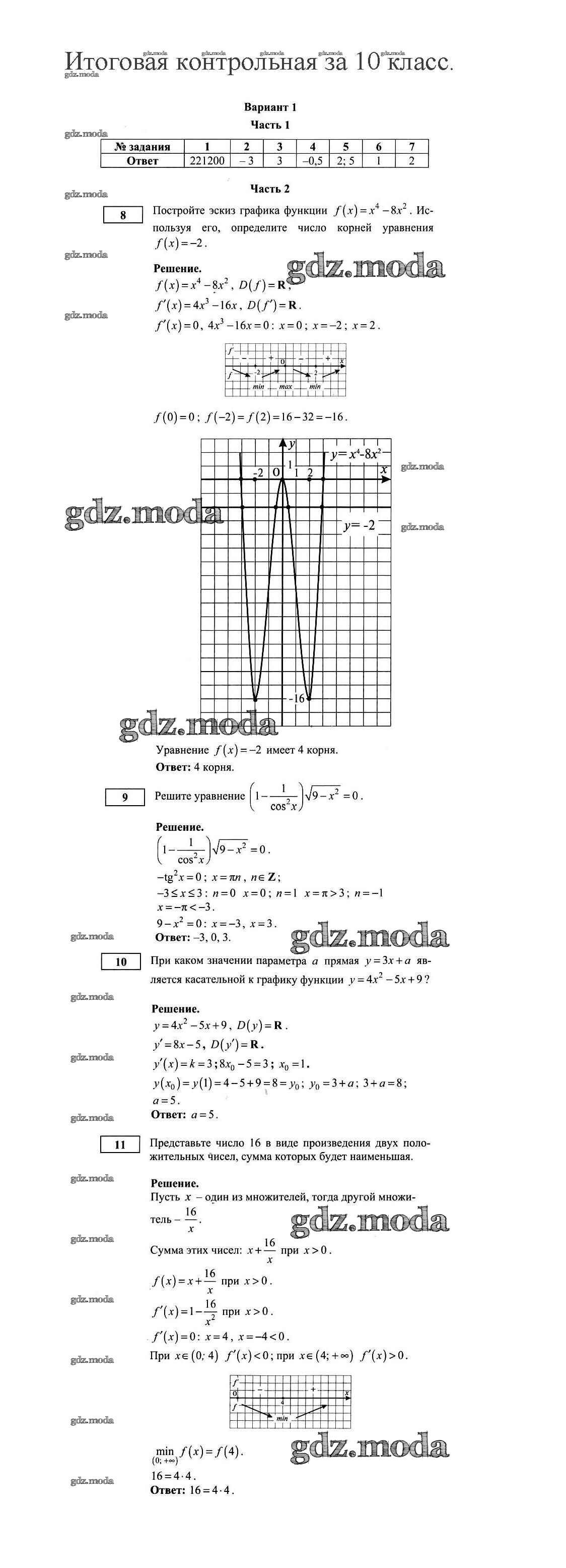 ОТВЕТ на задание № 1 Контрольные работы по Алгебре 10 класс Дудницын