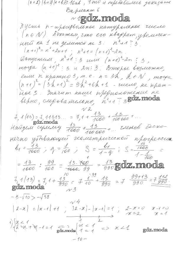 ОТВЕТ на задание № вариант 6 Контрольные работы по Алгебре 10 класс Глизбург Базовый и углубленный уровень