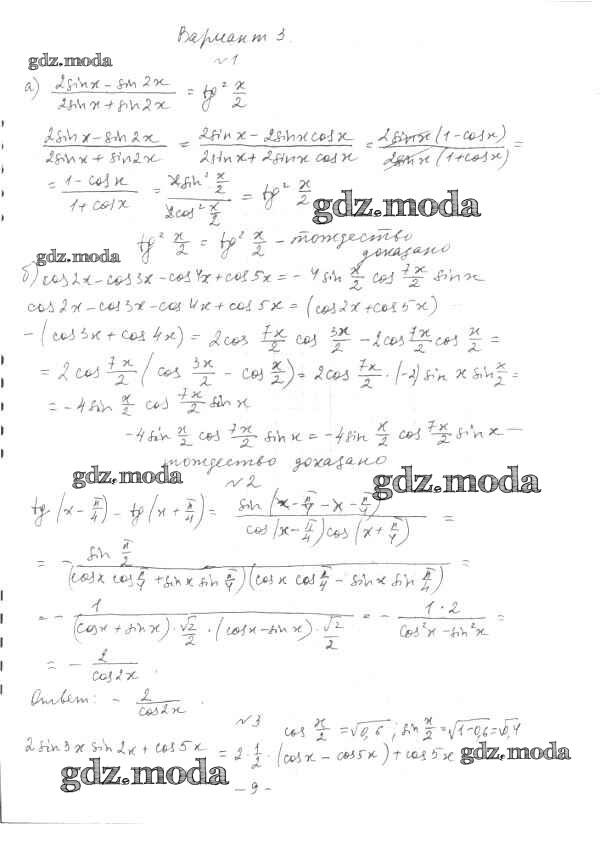 ГДЗ решение к заданию № вариант 3 Алгебра и начала математического анализа 10 класс Контрольные работы Глизбург В.И. Мнемозина 2014 Базовый и углубленный уровень ФГОС бесплатно на гдз.мода!