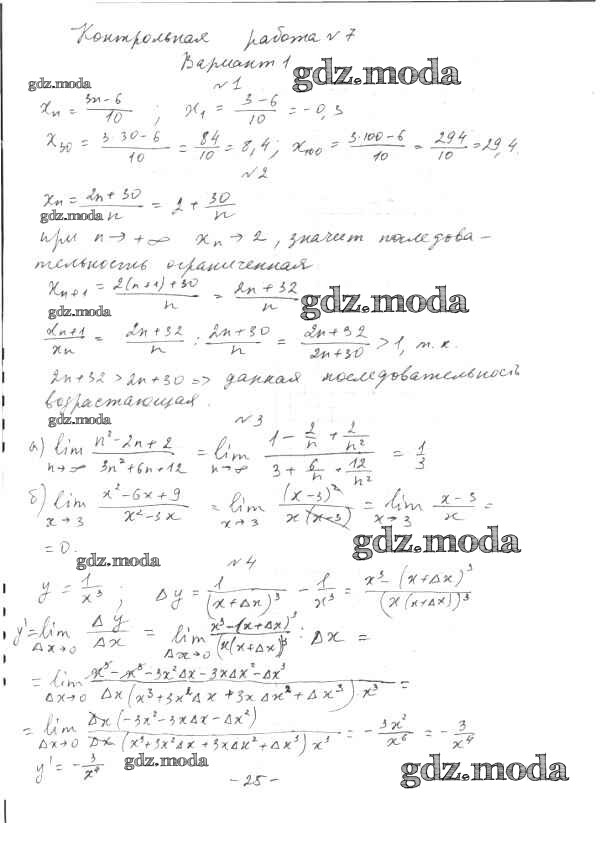 ГДЗ решение к заданию № вариант 1 Алгебра и начала математического анализа 10 класс Контрольные работы Глизбург В.И. Мнемозина 2014 Базовый и углубленный уровень ФГОС бесплатно на гдз.мода!
