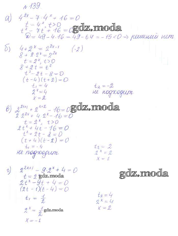 ГДЗ решение к заданию № 139 Алгебра и начала математического анализа 10 класс Базовый и углубленный уровни Никольский С.М. Просвещение 2015 Базовый и углубленный уровень ФГОС бесплатно на гдз.мода!