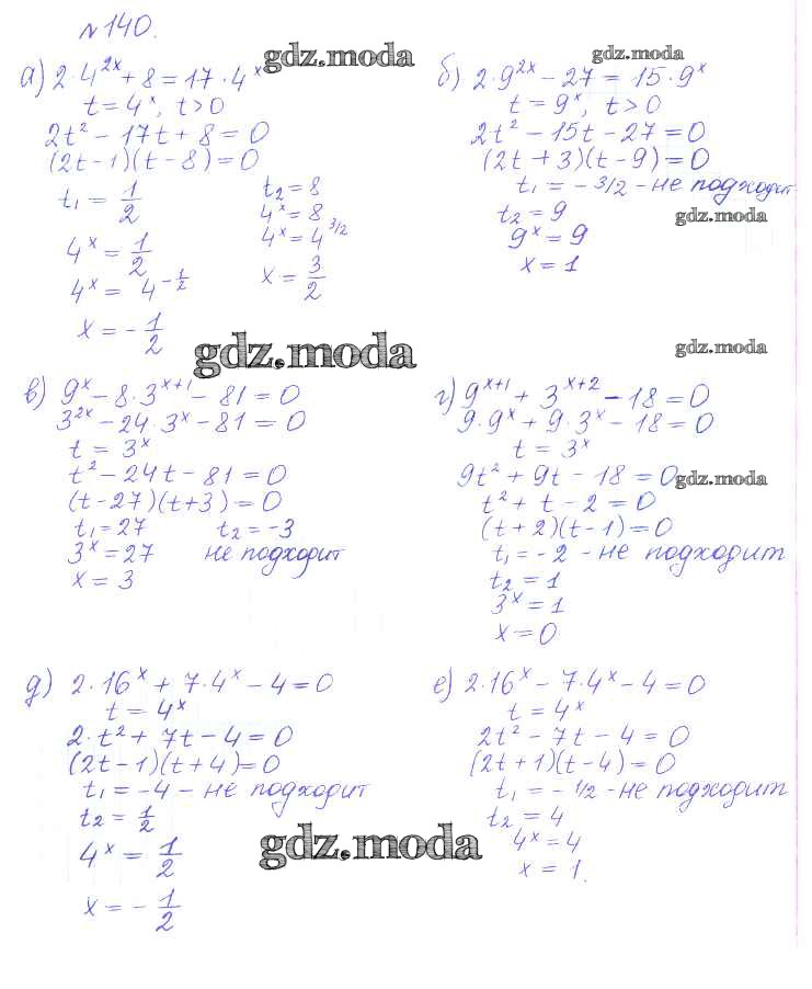 ГДЗ решение к заданию № 140 Алгебра и начала математического анализа 10 класс Базовый и углубленный уровни Никольский С.М. Просвещение 2015 Базовый и углубленный уровень ФГОС бесплатно на гдз.мода!