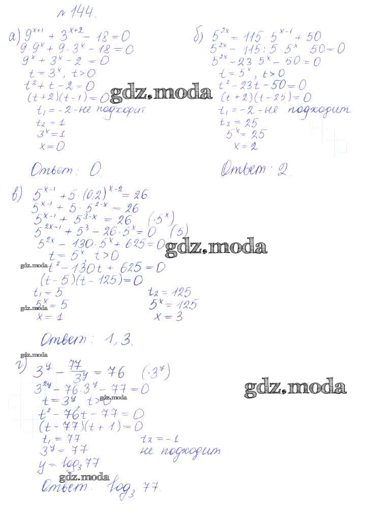 ГДЗ решение к заданию № 144 Алгебра и начала математического анализа 10 класс Базовый и углубленный уровни Никольский С.М. Просвещение 2015 Базовый и углубленный уровень ФГОС бесплатно на гдз.мода!
