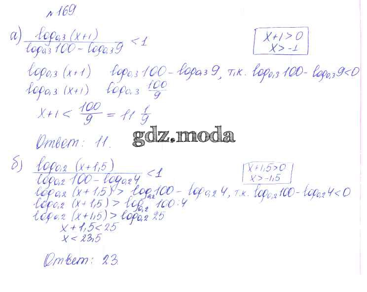 ГДЗ решение к заданию № 169 Алгебра и начала математического анализа 10 класс Базовый и углубленный уровни Никольский С.М. Просвещение 2015 Базовый и углубленный уровень ФГОС бесплатно на гдз.мода!