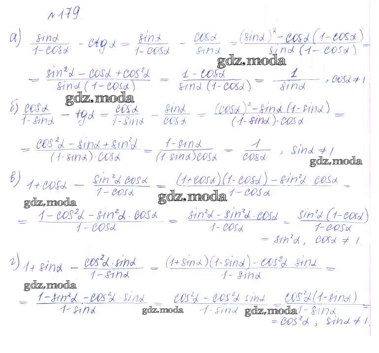 ГДЗ решение к заданию № 179 Алгебра и начала математического анализа 10 класс Базовый и углубленный уровни Никольский С.М. Просвещение 2015 Базовый и углубленный уровень ФГОС бесплатно на гдз.мода!