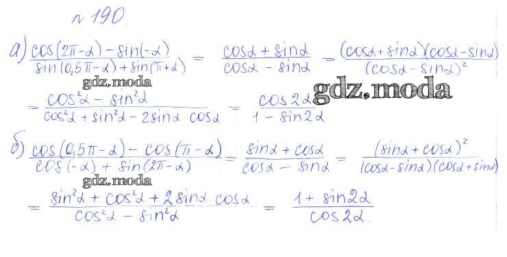 ГДЗ решение к заданию № 190 Алгебра и начала математического анализа 10 класс Базовый и углубленный уровни Никольский С.М. Просвещение 2015 Базовый и углубленный уровень ФГОС бесплатно на гдз.мода!