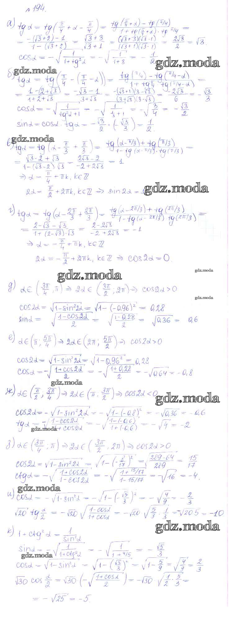 ГДЗ решение к заданию № 194 Алгебра и начала математического анализа 10 класс Базовый и углубленный уровни Никольский С.М. Просвещение 2015 Базовый и углубленный уровень ФГОС бесплатно на гдз.мода!