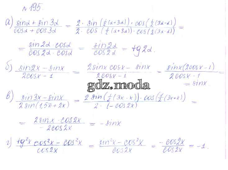 ГДЗ решение к заданию № 195 Алгебра и начала математического анализа 10 класс Базовый и углубленный уровни Никольский С.М. Просвещение 2015 Базовый и углубленный уровень ФГОС бесплатно на гдз.мода!