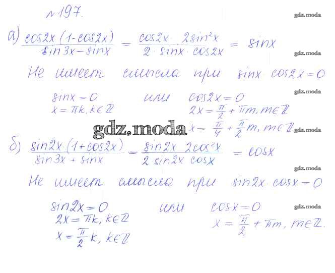 ГДЗ решение к заданию № 197 Алгебра и начала математического анализа 10 класс Базовый и углубленный уровни Никольский С.М. Просвещение 2015 Базовый и углубленный уровень ФГОС бесплатно на гдз.мода!