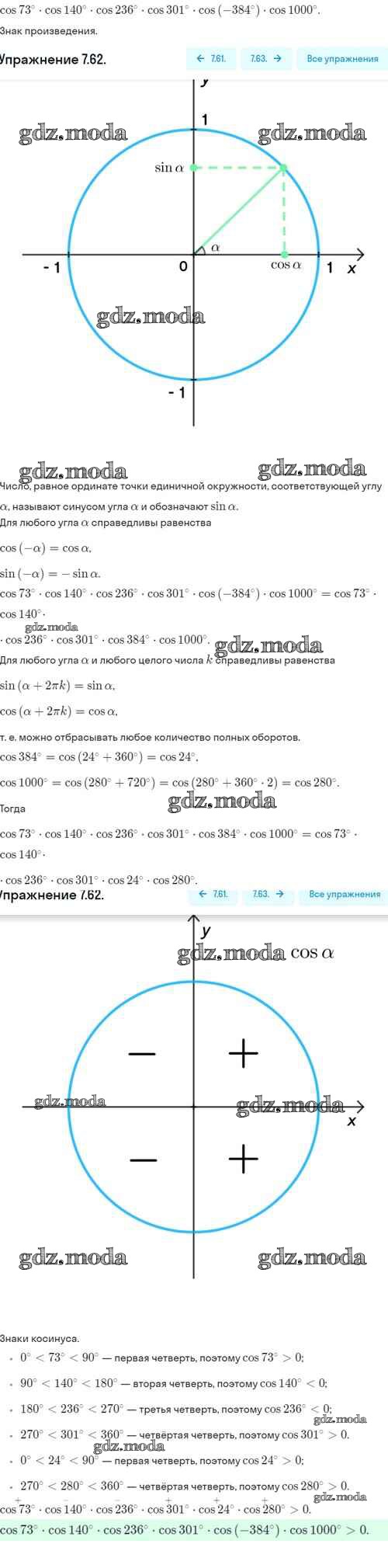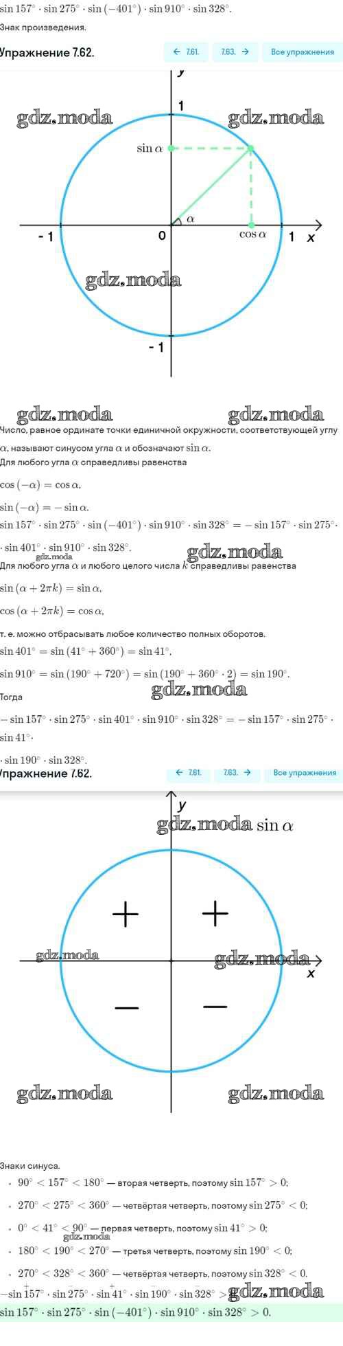 ОТВЕТ на задание № 7.62 Учебник по Алгебре 10 класс Никольский МГУ - школе Базовый и углубленный уровень