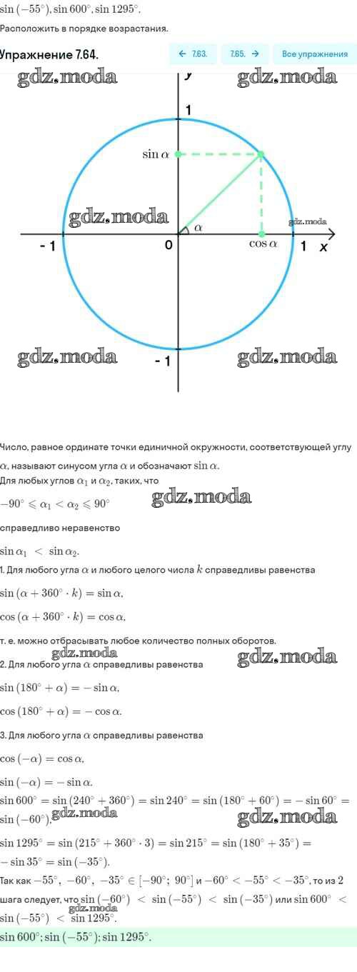 ОТВЕТ на задание № 7.64 Учебник по Алгебре 10 класс Никольский МГУ - школе Базовый и углубленный уровень