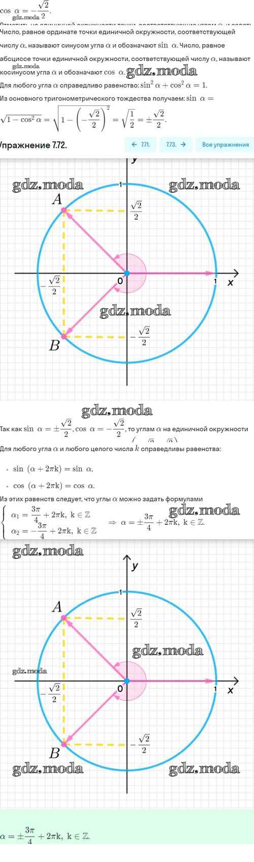 ОТВЕТ на задание № 7.72 Учебник по Алгебре 10 класс Никольский МГУ - школе Базовый и углубленный уровень