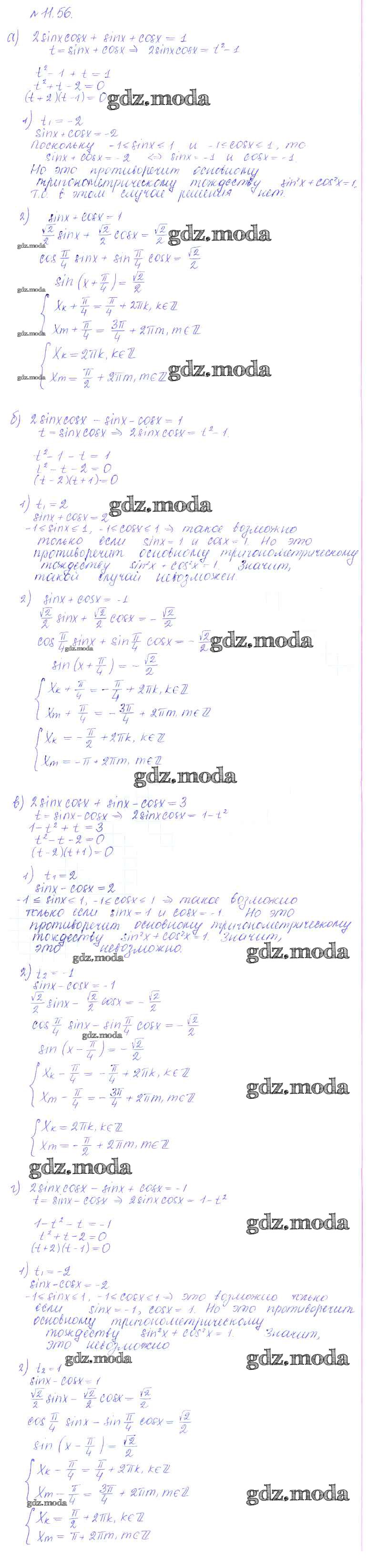 ГДЗ решение к заданию № 56 Алгебра и начала математического анализа 10 класс Базовый и углубленный уровни Никольский С.М. Просвещение 2015 Базовый и углубленный уровень ФГОС бесплатно на гдз.мода!