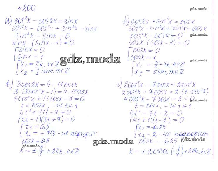 ГДЗ решение к заданию № 200 Алгебра и начала математического анализа 10 класс Базовый и углубленный уровни Никольский С.М. Просвещение 2015 Базовый и углубленный уровень ФГОС бесплатно на гдз.мода!