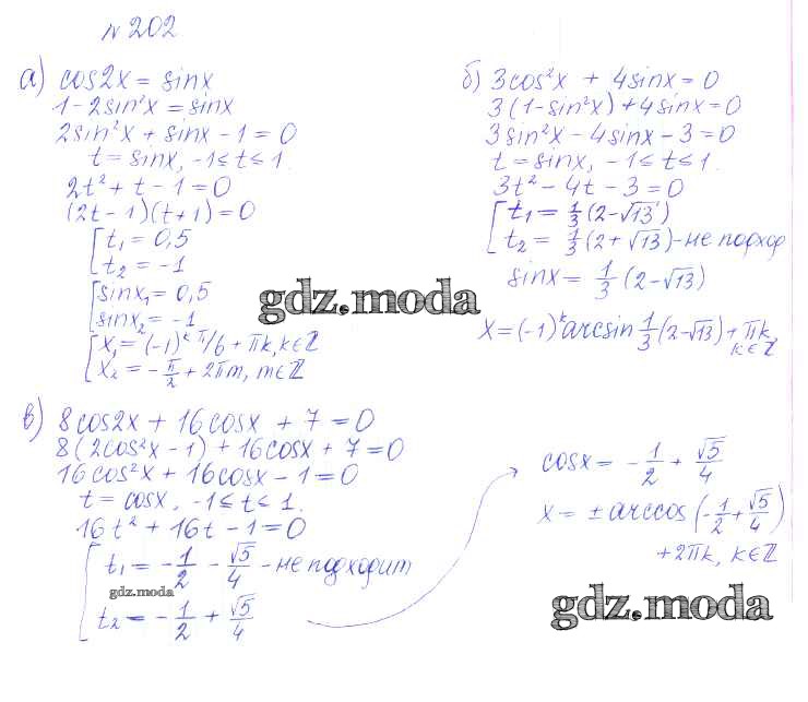 ГДЗ решение к заданию № 202 Алгебра и начала математического анализа 10 класс Базовый и углубленный уровни Никольский С.М. Просвещение 2015 Базовый и углубленный уровень ФГОС бесплатно на гдз.мода!