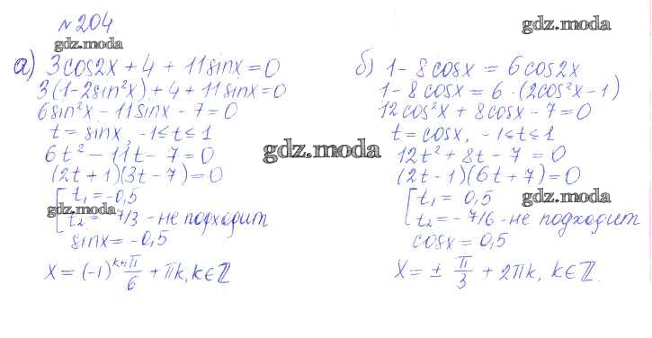 ГДЗ решение к заданию № 204 Алгебра и начала математического анализа 10 класс Базовый и углубленный уровни Никольский С.М. Просвещение 2015 Базовый и углубленный уровень ФГОС бесплатно на гдз.мода!