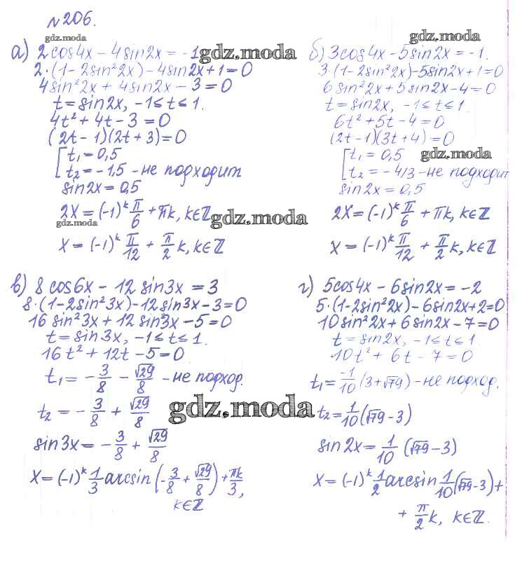 ГДЗ решение к заданию № 206 Алгебра и начала математического анализа 10 класс Базовый и углубленный уровни Никольский С.М. Просвещение 2015 Базовый и углубленный уровень ФГОС бесплатно на гдз.мода!