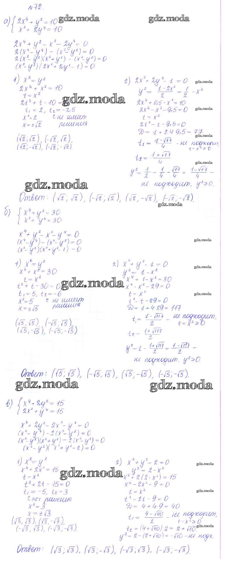ГДЗ решение к заданию № 72 Алгебра и начала математического анализа 10 класс Базовый и углубленный уровни Никольский С.М. Просвещение 2015 Базовый и углубленный уровень ФГОС бесплатно на гдз.мода!