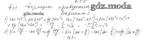 ГДЗ решение к заданию № вариант 1 Алгебра и начала математического анализа 10 класс Дидактические материалы Шабунин М.И. (к уч. Алимова) Просвещение 2017 Базовый и углубленный уровень ФГОС бесплатно на гдз.мода!