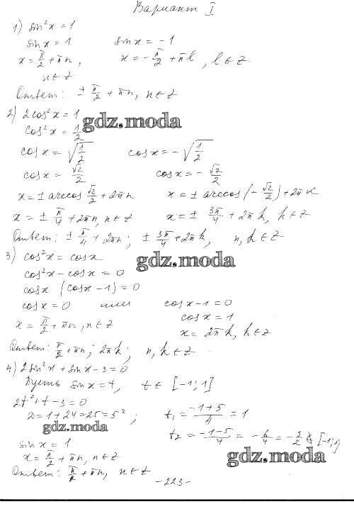 ГДЗ решение к заданию № вариант 1 Алгебра и начала математического анализа 10 класс Дидактические материалы Шабунин М.И. (к уч. Алимова) Просвещение 2017 Базовый и углубленный уровень ФГОС бесплатно на гдз.мода!