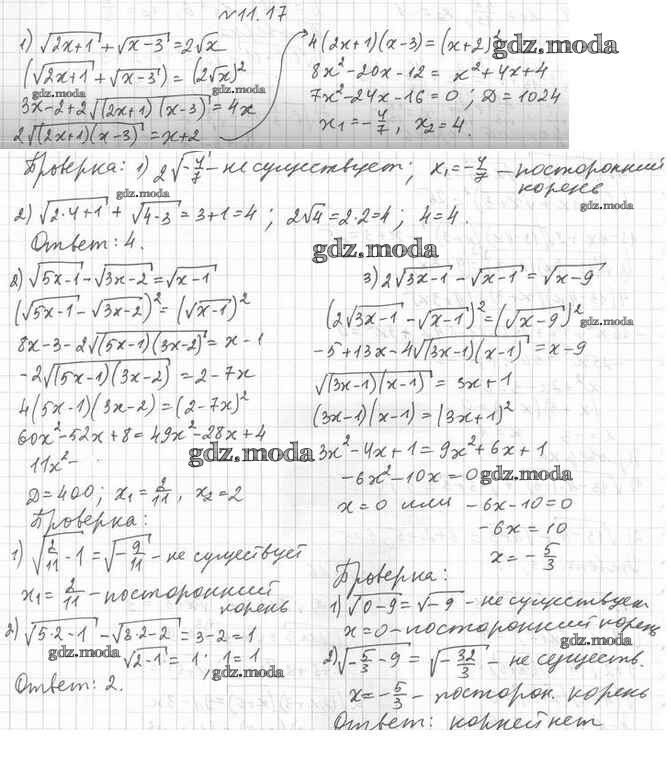 ОТВЕТ на задание № 11.17 Учебник по Алгебре 10 класс Мерзляк Алгоритм успеха Базовый уровень