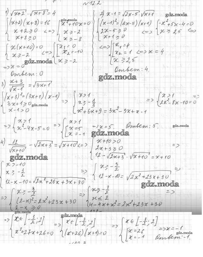 ОТВЕТ на задание № 12.2 Учебник по Алгебре 10 класс Мерзляк Алгоритм успеха Базовый уровень